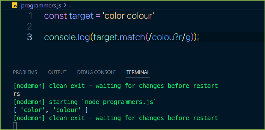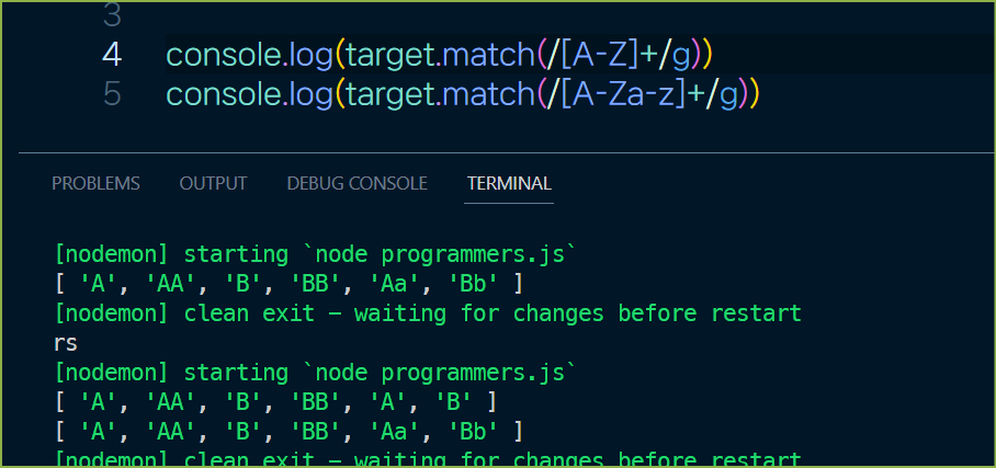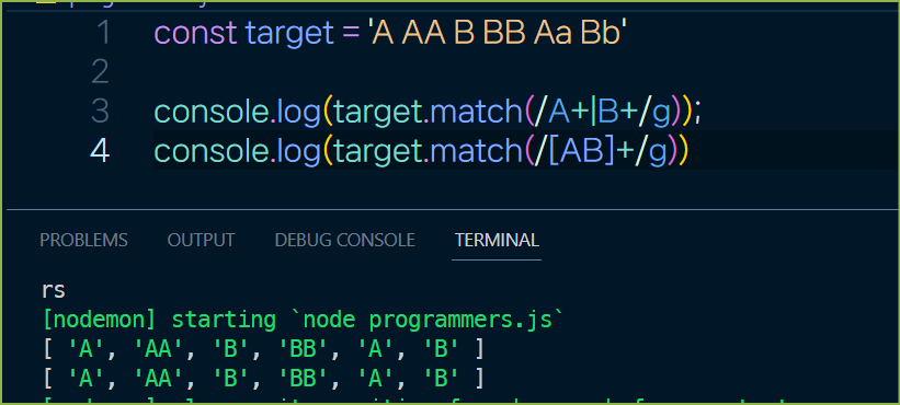console.log(target.match(/is/g));