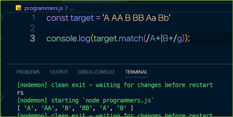 const target = 'A AA B BB Aa Bb AAA'