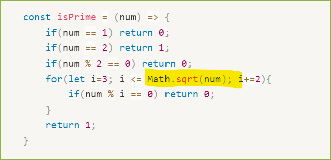 for (let i = 2; i <= Math.sqrt(n); i++) {
