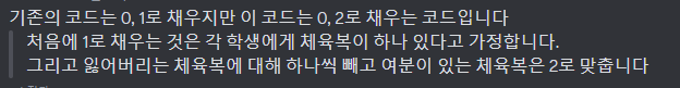 // ์ฌ๋ฒ ์ฒด์ก๋ณต์ ๊ฐ์ง๊ณ ์๋ ํ์ ์ฒ๋ฆฌ