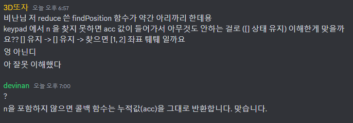 ๋ฆฌํฉํ ๋ง๋ findPosition ํจ์์์๋ reduce ๋ฉ์๋๋ฅผ ์ฌ์ฉํ์ฌ ๊ฐ์ ์์
