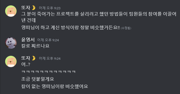 ๋ฌ๋ฆฌ๊ฐ ์ฐธ์ฌํ ์คํ์์ค ํ๋ก์ ํธ์์ ํ์ ๋๊ตฌ๋ ์๊ฒฌ ์ ์๋ ์ํ๊ณ , ์ฐธ์ฌ๋ ์ ์ํ๊ณ ๋ง๋ ์ ์ํ๋ค๊ณ ํ๋ค.