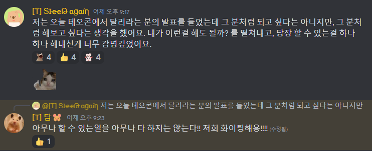 ์ฌ์ค ๋๋ ์ฝ๋๋ฆฌ๋ทฐ๊ฐ ๊ถ๊ธํ ์ , ํน์ ๊ณ ์น๊ธธ ๊ถ์ ํ๋ ์ ๋ฑ๋ง ์ฐ๋ ์ค ์์๋ค. ๊ทธ๋ ๊ธฐ์ ๋ฆฌ์กํธ ์คํฐ๋์๋ค์ ์ฝ๋๋ฅผ ๋ณด๊ณ ๋ ๊ทธ๋ฅ ์ํ์ ๊ฑฐ ๊ฐ๋ค..! ํ๊ณ ๊นํ์ ๋์ค๊ณค ํ๋ค.