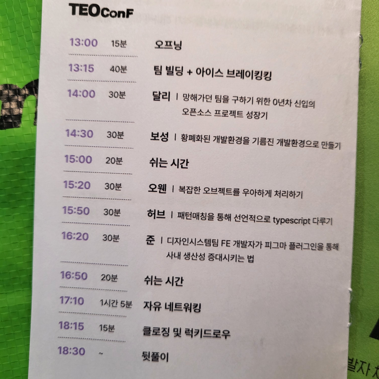 ์ฌ๋๋ค์ด ์ด๋ ์ ๋ ๋์ฐฉํด์ ์์ด์ค ๋ธ๋ ์ดํน์ด ์์๋๋ค. ๊ฐ์ ๋๋ค์์ ์ด๋ฆ๊ณผ ์ปจํผ๋ฐ์ค์ ๊ธฐ๋ํ๋ ์ ์ ์ด์ผ๊ธฐํ๋ผ๊ณ ํ๋๋ฐ, ์ฐ๋ฆฌ ์กฐ๋ ๊ฐ์ ๋๋ค์ ์๊ธฐ๋ง ํ๋ค๊ฐ ์๊ฐ์ ๋ค ๋ณด๋๋ค. ์ด๋ ๋ช ํจ์ ๊ตํํ๋ค.