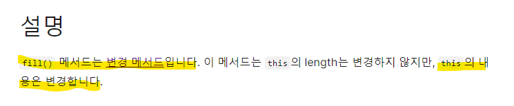 https://developer.mozilla.org/ko/docs/Web/JavaScript/Reference/Global_Objects/Array/fill