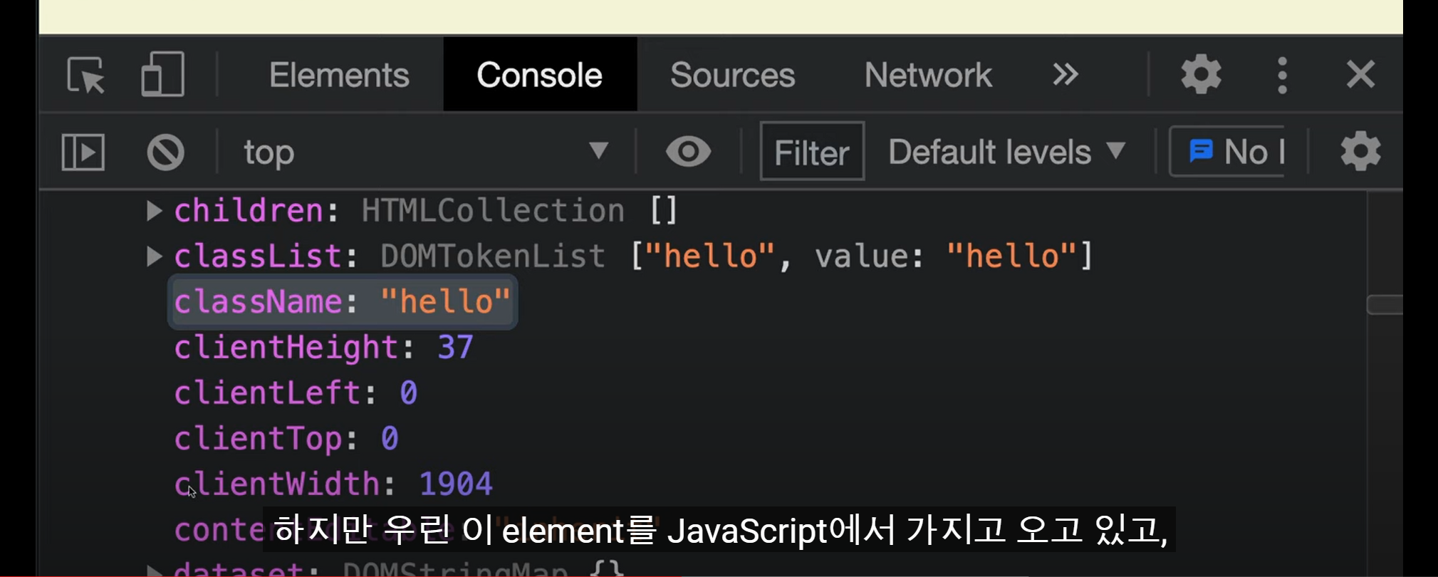 ์ฝ์์์ className์ด Hello๋ก ๋ฐ๋๊ฑธ ํ์ธํ ์ ์๋ค.