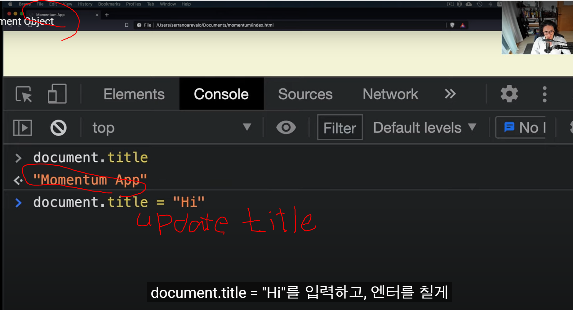 ์ฌ๊ธฐ์ ์ฐ๋ฆฌ๊ฐ ํ๊ณ ์๋๊ฑด, (์ฝ์์ฐฝ์์ document๋ณด๋ ์ค),